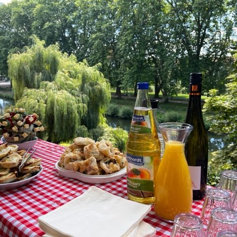 Picknick, 10 Euro pro Person netto inkl. Saft, Quiche, Hefezopf, Käsespieß)