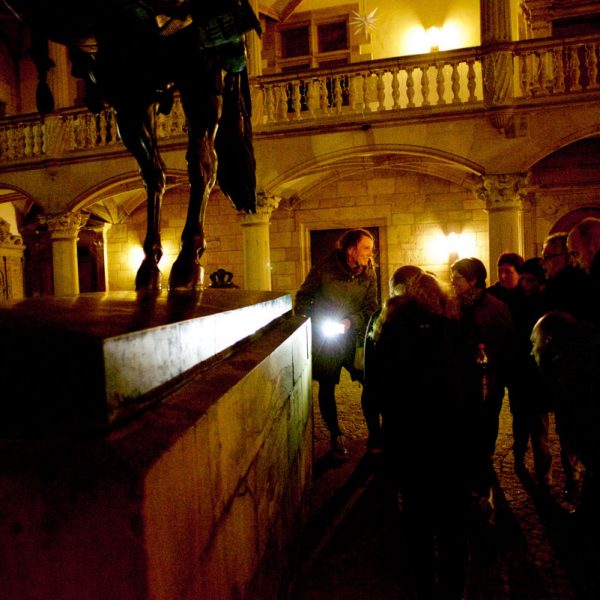 Die Nachtführung durch Stuttgart ist eine Spurensuche nach der Stadtgeschichte. Sie führt zu den vergessenen Orten der Alt-Stuttgarter Geschichten, wie dem steinernen Turm, und erzählt manche Geschichte neu, wie die von Mörikes Hutzelmännchen, den Goldmachern der Herzöge und vielen anderen.