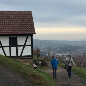 Über die verwunsche alte Beutau verlassen wir die Altstadt und gelangen über den J.-F.- Schreiber-Weg, einer sicher auch für geübte Stäffelesgeher beachtliche Treppenanlage hinauf zur Holgenburg und weiter zur Neckarhalde.