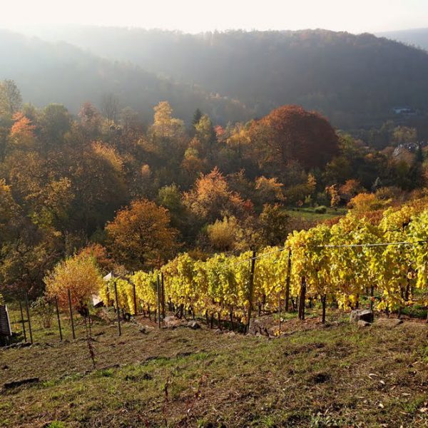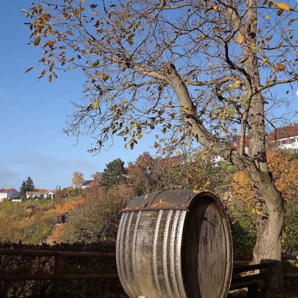 Weinverkostung im Weinberg Scharrenberg. Ausschank von regionalen Rot- und Weißwein, dazu werden Brezeln gereicht (8 Euro pro Person)