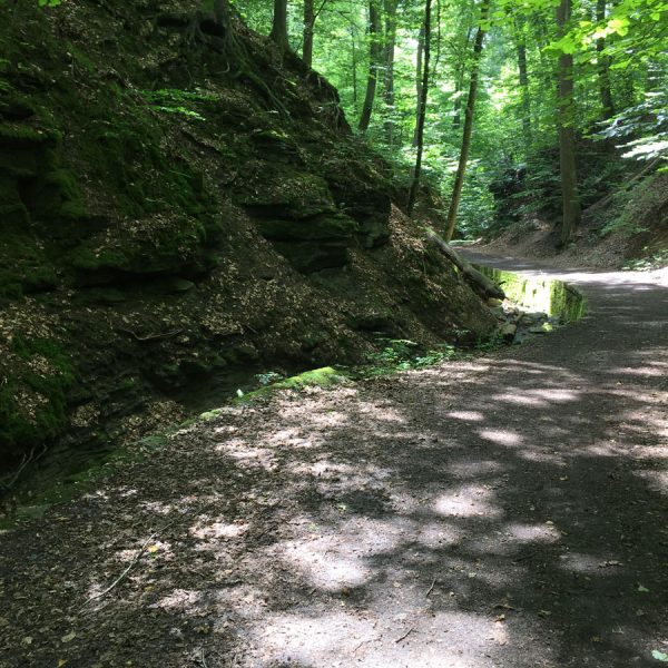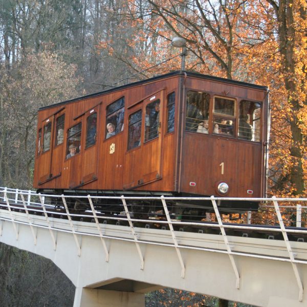 Der Spaziergang durch Stuttgarts östliche Halbhöhenlage beginnt an der Talstation der Standseilbahn. Seit 1929 pendelt sie zwischen Südheimer Platz und Waldfriedhof, weshalb sie vom Volksmund Erbschleicherexpress genannt wird. Vom Waldfriedhof, wo sich einige Prominenz „versammelt“, führt der Weg zur geologisch hoch interessanten Schwälblesklinge, dort wo der Nesenbach zu Tage tritt. Weiter geht’s nach Sonnenberg durch die Dornhalde zum Dornhaldenfriedhof. Dieser kam 1977 zu trauriger Berühmtheit, als dort drei RAF-Terroristen bestattet wurden. Auf dem Blaustrümpflerweg geht es nach Degerloch zum Scharrenberg, einer der kleinsten Weinbau-Einzellagen weltweit. Anschließend geht die Fahrt mit der „Zacketse“ vom Haigst (schwäbisch für „höchsten Punkt“) hinab in den Kessel, vorbei an der Wielandshöhe mit seinem Sternekoch Vincent Klink sowie der Haigstkirche. Das Ganze wird umrahmt von viel Geschichte und Geschichten, die die Stuttgarter Zahnradbahn geschrieben hat.